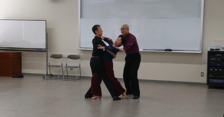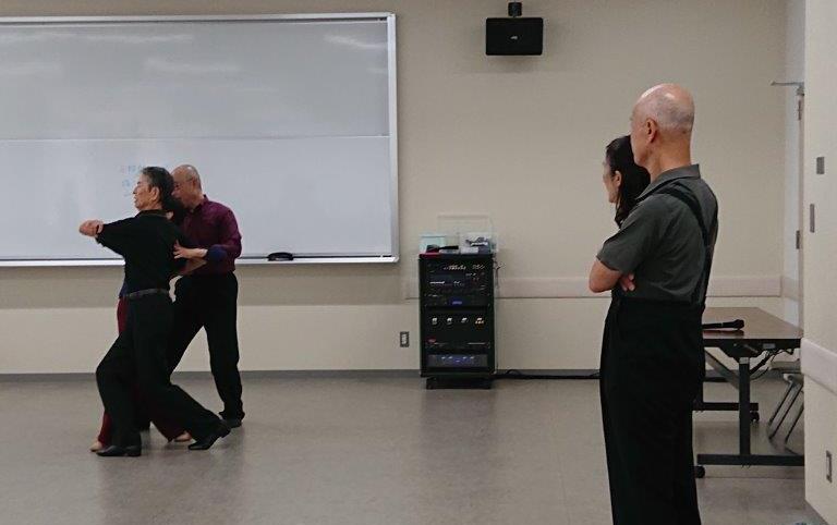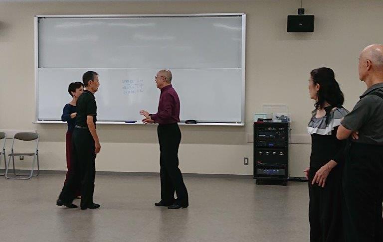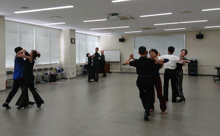 最初にラジオ体操をし、自主練習の踊り込みを行った後、PDの井ノ上先生から、各組15分間のアドバイスを受けました。 最初は、アドバイスを受けていない組は各自練習をしていたのですが、そのうちにアドバイスを受けている組がすごくよくなるのを見て、練習を座って見るようになり、踊りが見違えるようになるたびに拍手が起こるようになりました。 各組15分間のアドバイスが一通り終わった後、終了時間を延長して、2回目のアドバイスが行われました。 練習会の成果は、西部のファイナリストの指導があったので、各人見違えるようになったと思います。 知らないことも教えてもらった、体を使った踊り方が良く分かったと、大変好評でした。 初めてのカップル練習会でしたが、参加者には大変喜んでいただけたと思います。 また、開催をしたいと思います。 |