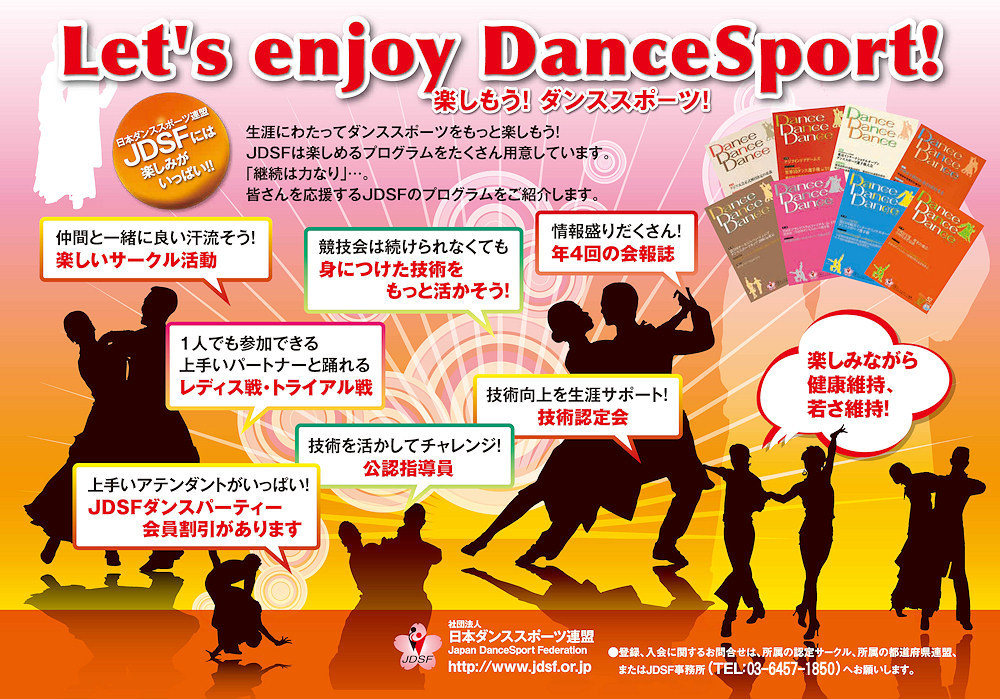 競技などしなくてもなれるんです! 奈良県ダンススポーツ連盟はダンスの上手い人達だけの集まりではありません。 ダンスをこよなく愛する人たちの集まりです! 《ダンスが楽しくうまくなるための催しがいっぱい!》