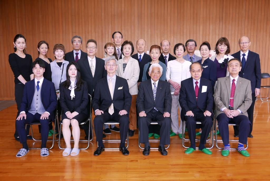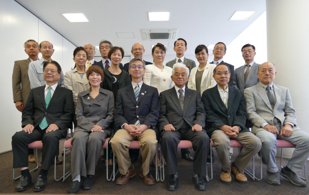 2018年4月21日、はぐくみ会館にて撮影 【後列左から】伊東勝、森田征雄、奥田徹、佐野信哉、笠井敏雄、中重春雄 【中列左から】下垣都博、明正房江、小野村順子、上田紀代子、稲次美智子、内田一広 【前列左から】阪田麗二、阪田君子、大江偉夫、西村増雄、白波瀬利光、明正和夫 |