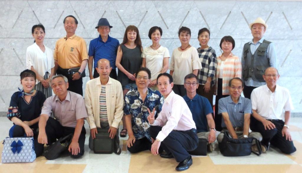2019年8月3日、リーベル王寺にて撮影 【後列左から】奥野典子、木野博幸、上亟明、島陽子、小野村順子、上田紀代子、明正房江、 札場昭子、明正和夫 【前列左から】阪田君子、伊東勝、下垣都博、阪田麗二、笠井敏雄、大江偉夫、白波瀬利光、 佐野信哉 |