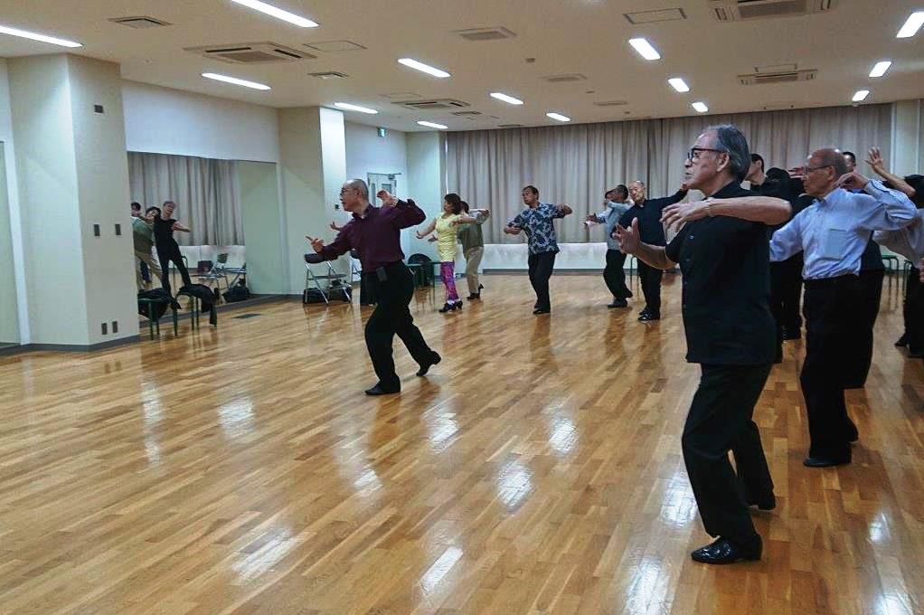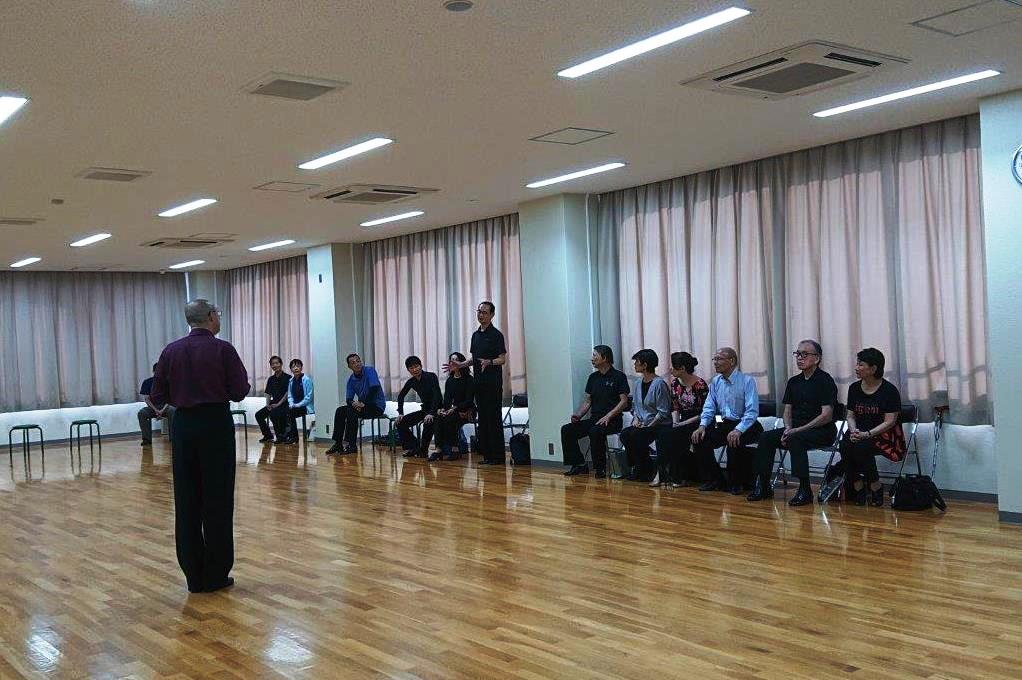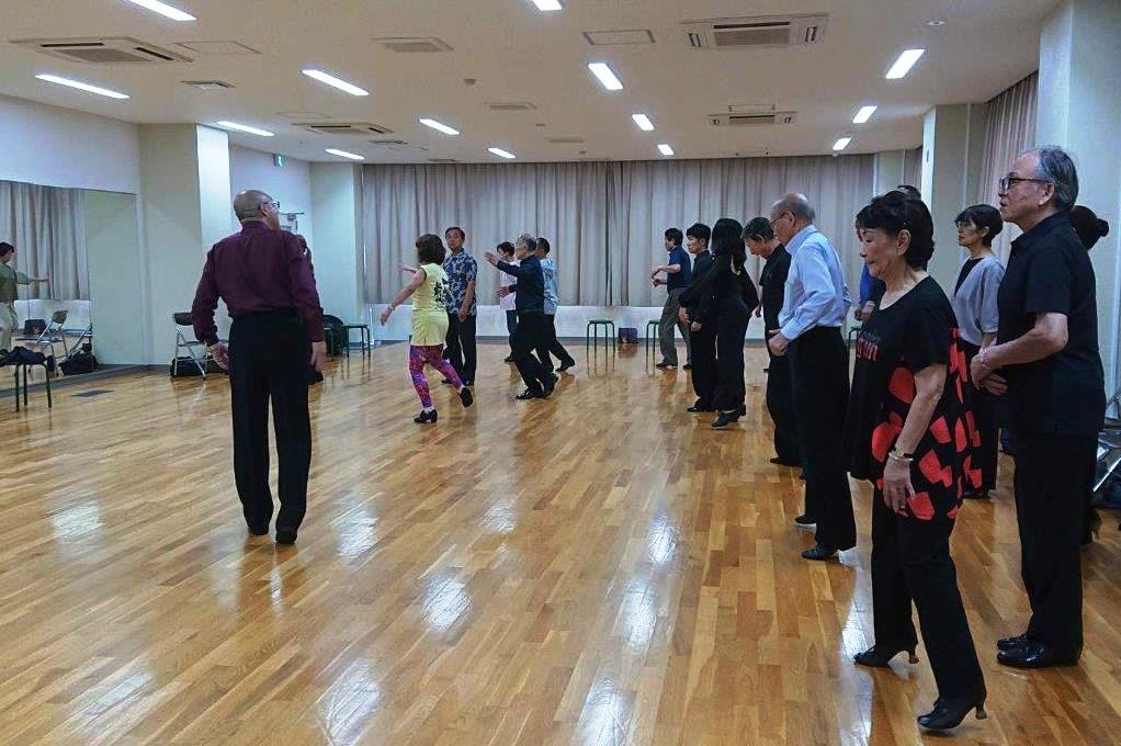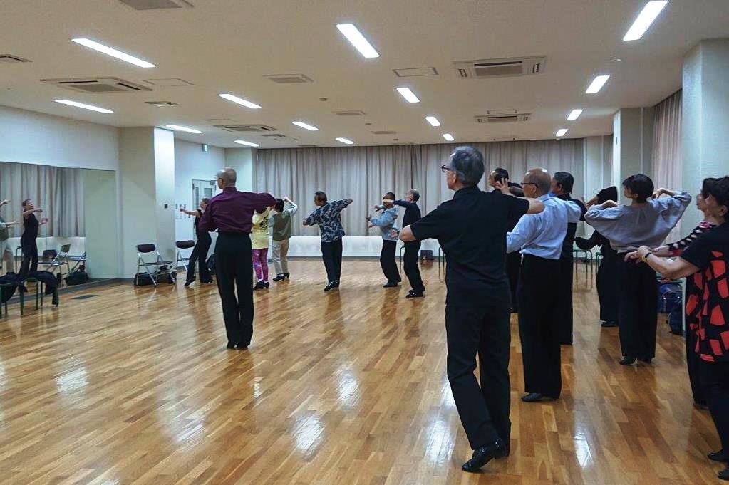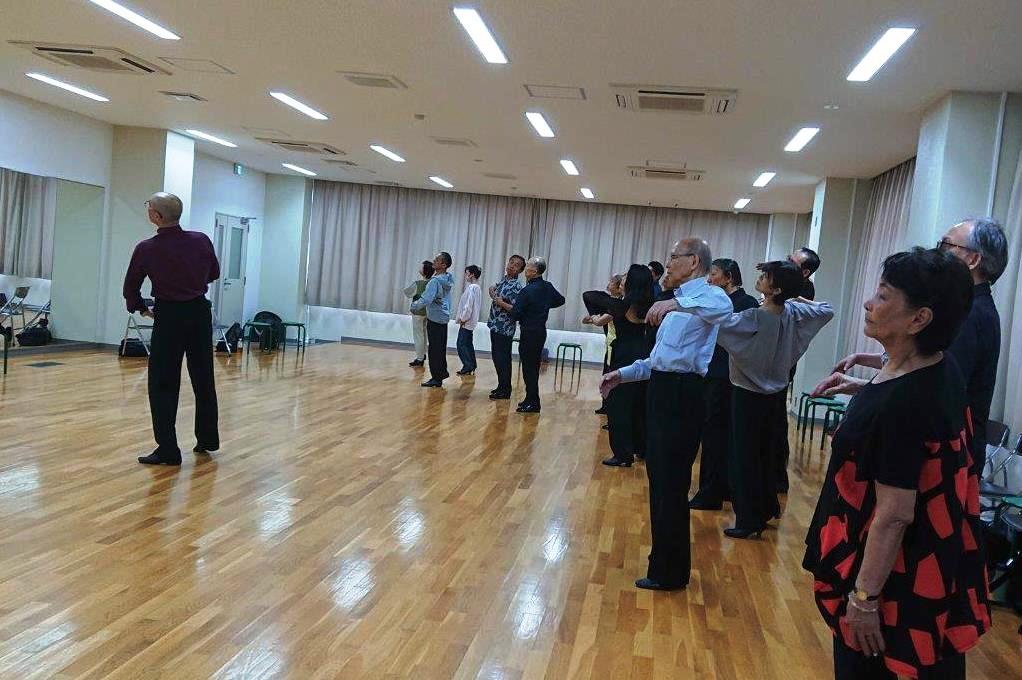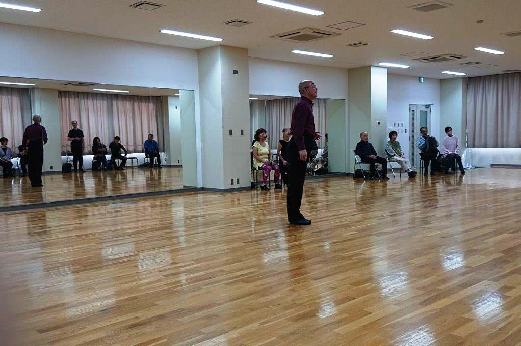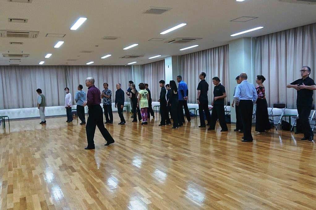 今回は、20名の指導員が参加され、皆さま終始熱心に受講されました。 講師はPDの井ノ上 英之先生で、ダンススポーツ教本の中から、前進ステップ(ロア、レジスト、コントロール、プッシュ、リカバリー)と後退ステップ(これにプレパレーションが加わる)の説明と、この中でレジストを重点的に説明され、レジストによってスウイングが生まれる様子や、テイクバックによってスイングがダイナミックになる様子など、非常に分かりやすく説明され、みんなで練習をしました。 また、後退する人が頑張り、前進する人は頑張ってはいけない、後退する人が、股関節を引いて相手を吸い込むことで、相手は楽に踊れるという説明や、また、スウェーについても、腰で行う通常のテクニカルスウェーに続けて、胸から上で行うコスメティックスウェーを加えることで、立体的な動きが表現できるなど、美しく踊るための基本的な事柄を沢山教わり、本当に素晴らしい研修会でした。 |